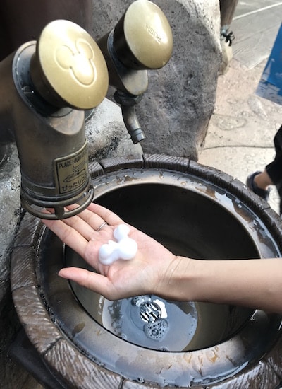 Hidden Mickeys were spotted everywhere, in the smallest details like the embellishments that dot some of the walls to how certain things are arranged in the gift shop. Soap dispensed in the shape of Mickey Mouse, however, is something we didn’t expect. This one is at located next to Tokyo DisneySea’s Splash Mountain.