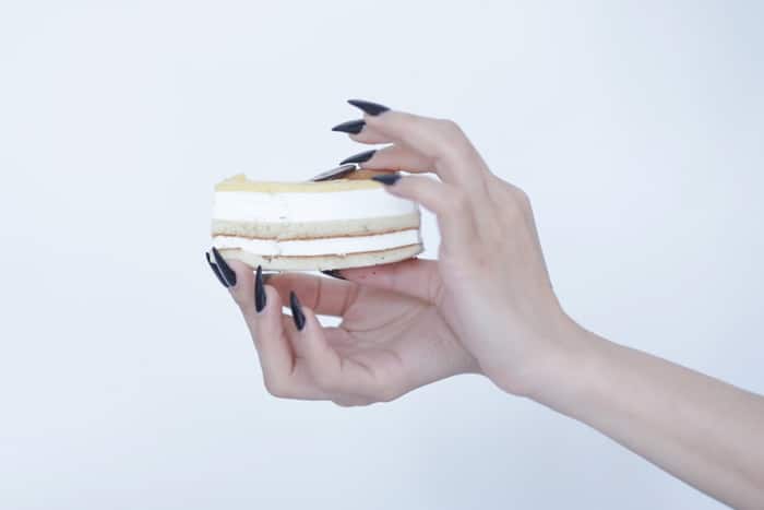 Touching on the trend of autonomous sensory meridian response (ASMR), eating cake and footbound explore how tactile sensations and auditory stimuli are experienced through digital media. In eating cake, a pair of hands tears into dessert, crushing it to the background of a textured soundtrack. footbound then combines the movement of feet on latex with lines from Sappho’s poems, and deep sea ASMR sounds.