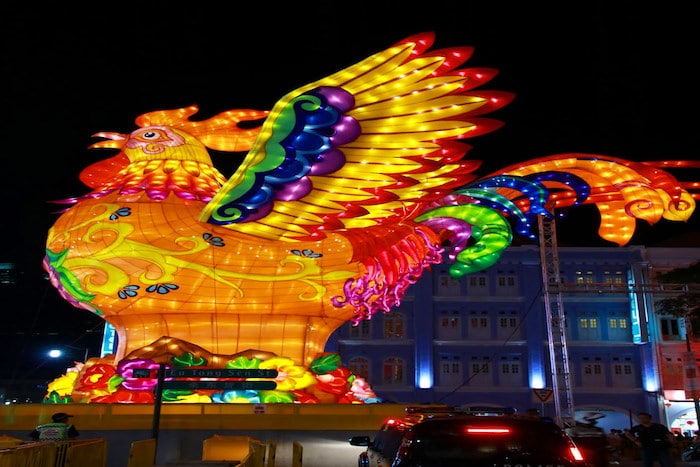 With Chinese New Year is just around the corner, the folks in Chinatown have prettied up the area around New Bridge Road and Eu Tong Sen Street with bright lights once again. The impending year of the Rooster means that the light-up includes handmade sculptured lanterns of roosters, hens and chicks in a combination of traditional and modern designs. That’s not all; visitors can look forward to a range of performances from both local and international artists, including acrobats.