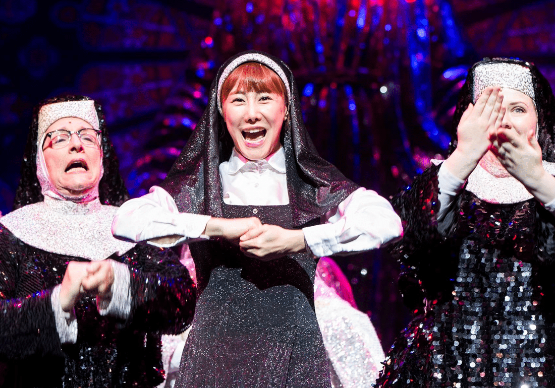 Of course, the same setting lends for a whole slew of delightful surprises and comic one-liners from the sisters. Who knew the meek postulant nun Mary Robert (played by Korean actress Sophie Kim with her pop star looks and charming smile) would be able to belt out a powerful solo like in The Life I Never Led? Then again, we shouldn’t be surprised with an established career that’s seen leading roles in Rent, Mamma Mia, Dreamgirls, and Austrian musical Mozart!