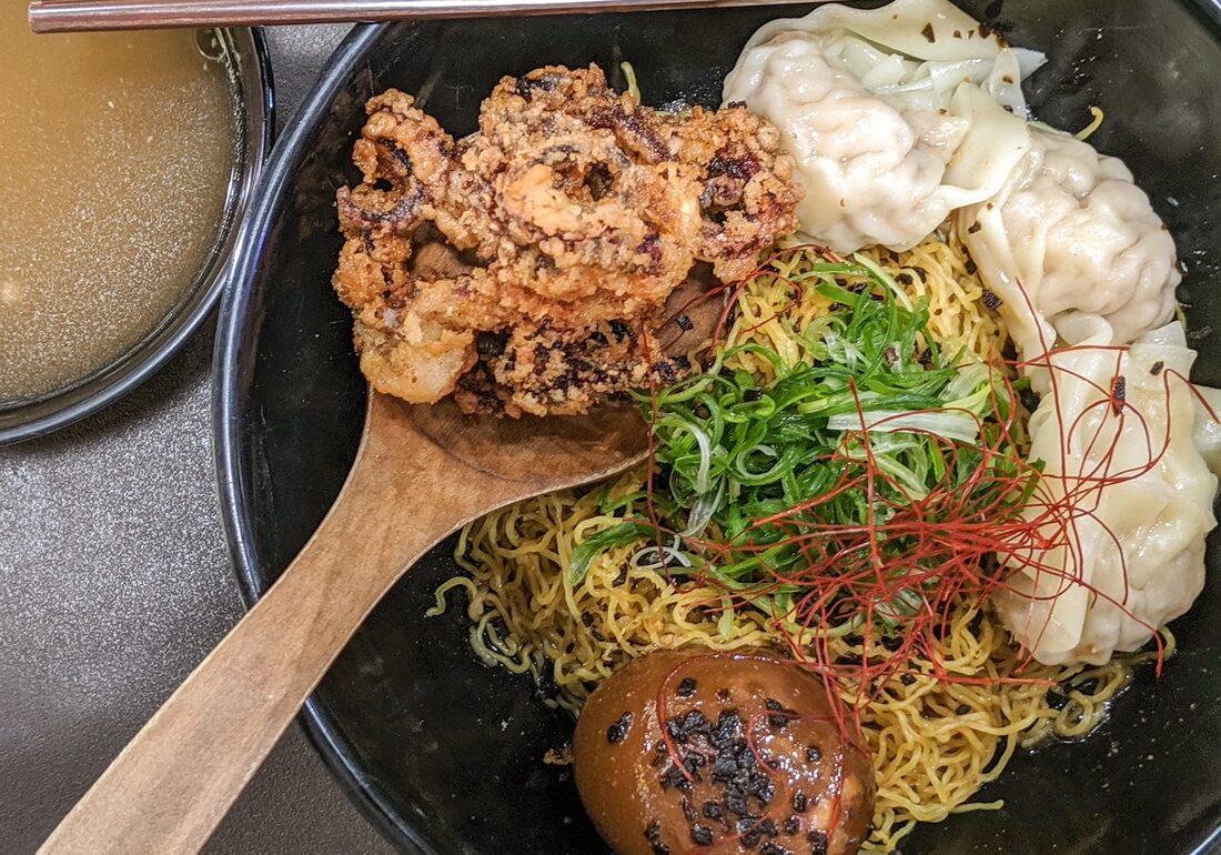 Chashu, wontons, and potato-wrapped prawn fritters come together in one scrumptious bowl at Noodle Story. Their signature Singapore-Style Ramen (S$8/11/15) is a thin, springy cross between ramen and wonton mee, made all the more luscious when you mix in the oozing onsen egg. The chashu is thick and marbled, the wontons plump and silky; tied together with a dried shrimp sauce, it’s not hard to see why this dish is Michelin Bib Gourmand-worthy. A word of warning though, the queues here move slow − we spent more than 40 minutes in a line of ten people!