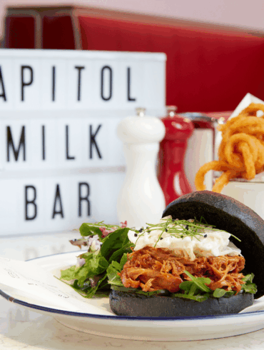 Red leather booths, transparent jars of old-school biscuits filing the wall shelves, and the blues of the 1950s playing in the...