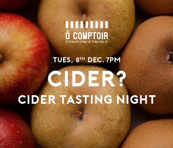 Come and join us for a cider tasting at Ô COMPTOIR! Learn all about how cider is made and try...