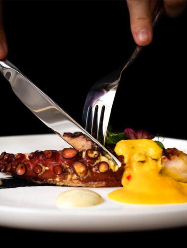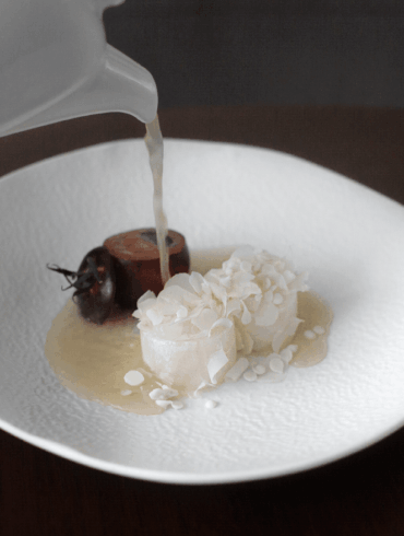 Origami flowers are not what we’d expect in a fine dining place, but here they are, sitting inside a bell...