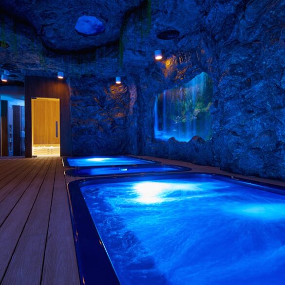 Three Jacuzzi pools filled with mineral water – one at 40 degree Celsius, one at 38 and another at 7...
