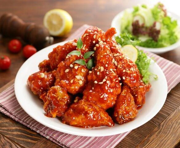 Crispy fried chicken and some other Korean yum yums.. Great with an ice cold beer. Be sure to book in...