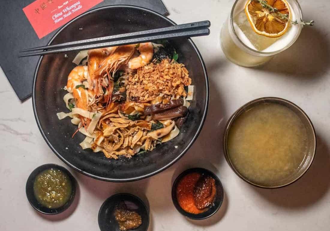 With travel off the cards for a long while yet, watering holes in Singapore used to overseas guest bartenders dropping in all the time are now looking inward for collaborations. And the most unique partnership in recent times has to be Tanjong Pagar’s Revamp Cocktail Bar hooking up local ban mian veteran China Whampoa Home Made Noodle (since 1989) – bringing us a one-of-a-kind dining experience in the CBD.