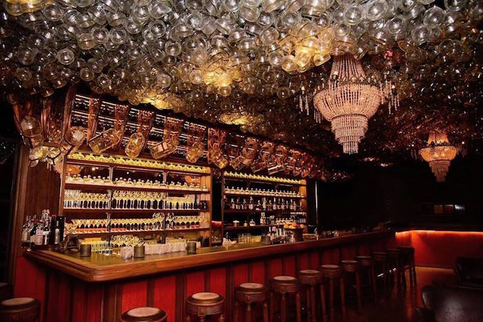 With it’s dark wooden surfaces, velvet panels and leather armchairs, it feels like you’re stepping onto the set of a Baz Luhrmann film. In typical Iron Balls style, there are naval references scattered throughout the bar, the centre piece being an old deep sea diving helmet. The hundreds of empty bottles of their flagship gin are suspended from the ceiling look like the bubbles on the ocean surface just before a diver emerges.