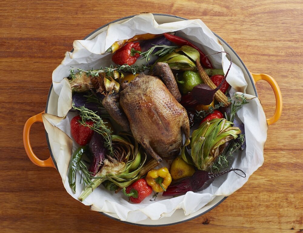 Top Image: Roasted Pigeon in Parchment Paper with Roasted-Baked Vegetables