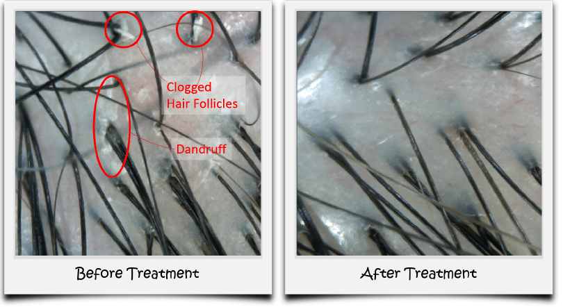 Before- and after-treatment scalp photos of a Beijing 101 client. Aren’t the results clearly visible?