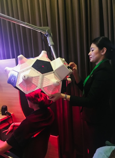 Every treatment at Beijing 101 starts with a detailed scalp analysis and consultation with a trained professional. This helps you understand your current scalp condition and involves customising a treatment to target different issues, from oily scalp to dandruff, hair loss, hair thinning, and alopecia – or well, spot baldness.