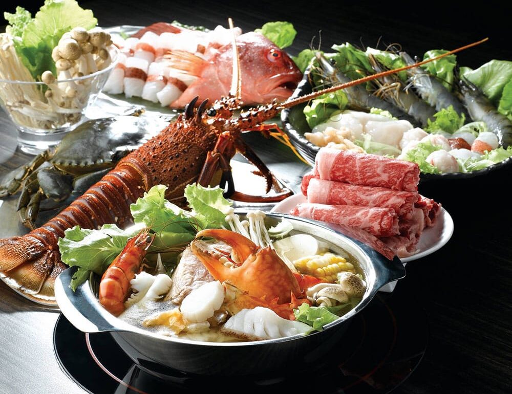 If you’re not sure of what to go with your soups, a buffet not too hard on your wallet is Hai Xian Lao’s dinner spread. For an affordable price of $34.80++, a diversity of soups, seafood, meat and other steamboat essentials are at your disposal within a two-hour time limit. Enjoy fresh picks of Spanish fruit-fed pork belly and collar, live tiger prawns, green mussels and housemade tofu in specialty broths such as Tomato, Laksa and Healthy Collagen (additional $3).