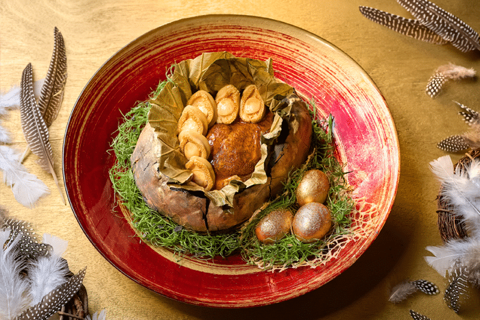 Adding to the Chinese New Year cheer are two new unique yusheng platters: the delicate Prosperity Amberjack ‘Lo Hei’ and fruit-based Fruity ‘Lo Hei’ with Rosemary Plum Sauce; alongside indulgent savoury delights such as Braised Pork Belly with Sea Treasures in Claypot and Braised Whole Chicken with Sea Treasures in Claypot (filled with 10-head abalones, sea cucumber, dried oysters, and flower mushrooms), Double-boiled Wild Chicken Consommé, and a pretty platter of nian gao in three ways – deep-fried ‘yuan yang’ sesame, ondeh-ondeh style, and as a chilled durian roll.