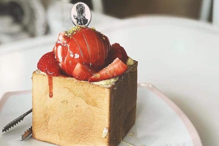 Dazzling Cafe is the go-to place for Instagram-worthy honey toasts. Choose from four flavours of Signature Honey Toasts – Classic, Strawberry Lover, Hazelnut Chocolate, and Acai Berry. Our pick is the Strawberry Lover (S$18), with thick, fluffy Shibuya toast topped with strawberry ice-cream and fresh strawberries. Drizzle some honey for added sweetness.