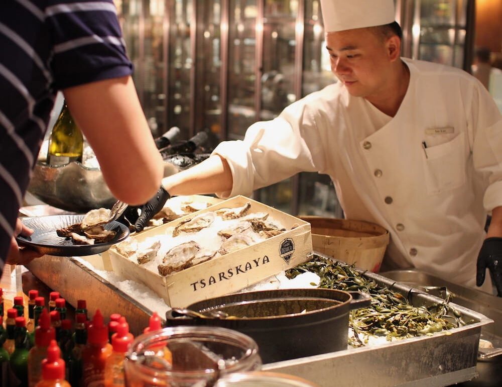 The wine-by-the-glass stations are easy enough to spot, set up prominently beside key counters and kitchens where diners can help themselves. For instance, the cold, fresh, and sustainable seafood (certified by the Chain of Custody awarded by the Marine Stewardship Council) was flanked by a 2012 Pascal Jolivet Pouilly-Fume from the Loire Valley in France. Made with sauvignon blanc grapes, the light acidity and slight mineral inclination combined with a subtle nose of green apples made it a great match for the French fine de claire oysters, juicy Spencer Gulf wild king prawns, and crustacean-sweet Maine lobsters.