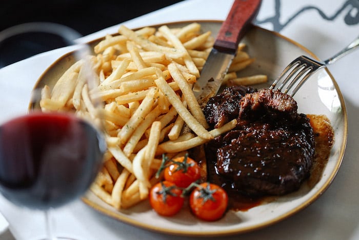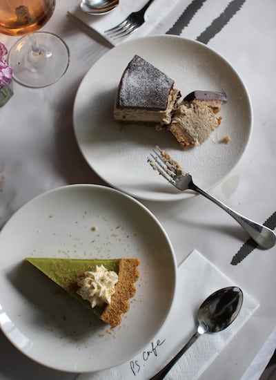 As with this format of brunching, we didn’t overeat (much). In three hours and over two bottles of wine, we tried the Crispy Calamari ($17), the Portobello Brunch Soufflé ($27), the Steak Frites ($38 for 180g, $54 for 220g), and the Spicy King Prawn Aglio Olio ($29). The squid rings were well-battered and well-fried so the duo of dips that came with it wasn’t really necessary. PS.Cafe didn’t butcher the classic steak and fries combo; the medium-rare 180g corn-fed petite tender (a cut from the shoulder of the cattle) rang in with a slight sweetness amidst the beefy flavor even if it could use a bit more charring on the outside. The accompanying porcini mushroom sauce was tasty enough that we asked for more to finish up the pile of shoestring fries. Just note that the 220g of steak is a different cut of grain-fed ribeye.