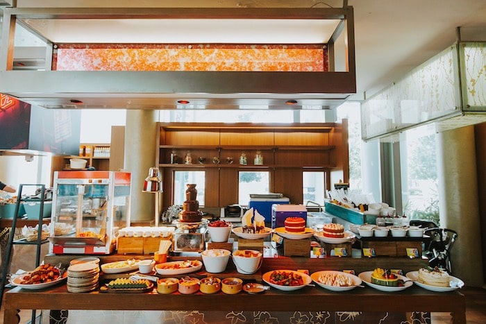 Even if you aren’t one to waste space on carbs at buffets, try their mushroom barley risotto with black truffle. The grains are cooked to a nice al dente, it’s not too creamy and the truffle is subtle enough to finish the entire portion on one’s own. Both the chicken soup (great for hangovers, really) and the laksa broth at the noodle station are perfect if you want something warming too.