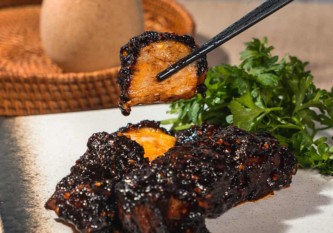 In the Spicy Sichuan Chicken with Ice Cream (S$18.80++), chicken chunks are deep-fried with peppercorns and dried red chillies and served with a side of vanilla ice cream. More than a quirky combination, ice cream helps to reduce the heat from the chillies and balances the savoury chicken. If you like fries dipped in ice cream, you will appreciate the play of flavours here. But even if you don’t, the spicy chicken chunks are toothsome on their own.