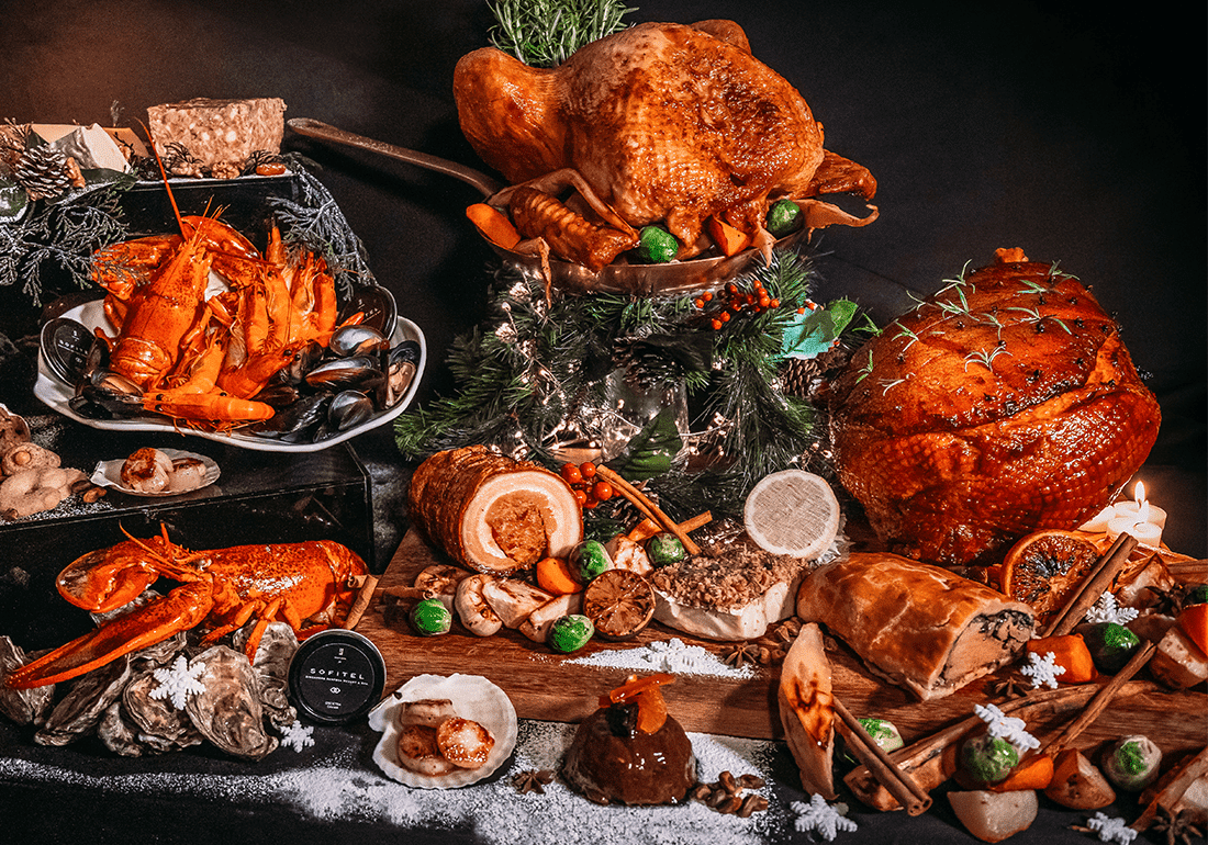 For a coastal Christmas, head to Kwee Zeen at Sofitel Sentosa Resort & Spa for their Christmas Mega Safe Brunch (S$138++ per pax) – expect a tower of festive local and brunch favourites – complemented with free-flow bubbly (S$128++ per pax, S$148++ for rosé brut). Dine on fresh seafood, cold cuts and cheeses before tucking into Foie Gras Terrine, Sage-Butter Roasted Turkey, Beef Wellington, and more.
