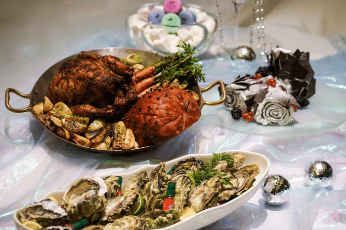 Yule revelry doesn’t get much more opulent than Marriott Cafe’s Christmas Eve Buffet Dinner. Indulge in a whole sleigh full of more than 110 items on their festive menu, from roast turkeys and premium charcuterie to chutney-paired Pan-Fried Duck Foie Gras and Beef Brisket deliciously rubbed with coffee and chermoula. The buffet spread is also swimming in seafood gems, including Grilled Scallops with zesty salsa verde, piquant Crayfish with Chili Herb Butter, and Lobster Thermidor. And since it’s Christmas, you won’t need to resist the lure of sweet treats like Raspberry Crumble with Rum-Infused Fruits and brandy-infused chocolate pudding.