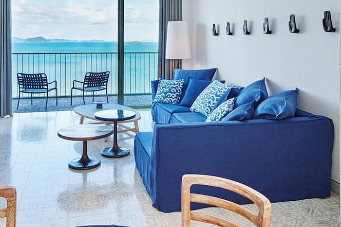 In contrast to the grey and burnt orange we’ve seen so far, our 100 square metre (1076 square feet) suite featured blue and turquoise accents amidst white walls and pretty grey patterned tiles. The floor to ceiling windows separate the separate living room and bedroom (lovely Egyptian cotton sheets covered the king-sized bed) from the private terrace balcony overlooking the Yamu Bay. There’s also a dining table and chairs in a little nook next to the living room so in-room dining is a breeze. What’s more, the many international power sockets are placed around the suite in all the right places, so you don’t have to hassle with travel adapters and remain connected to the outside world.