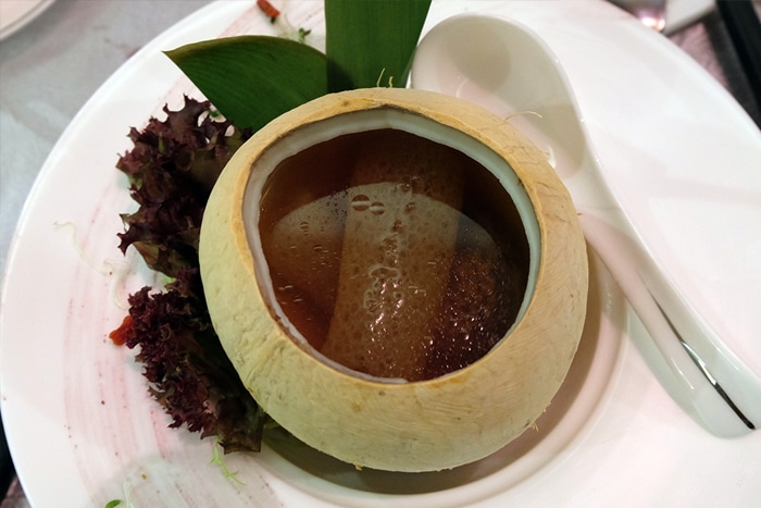 No proper Chinese meal is complete without soup, and definitely not without the Double-boiled Morel Mushroom & Bamboo Pith Soup ($18++). Clear, tasty, and cooked in a young coconut, there’s nothing quite as belly-warming as this.Crystal Jade Prestige