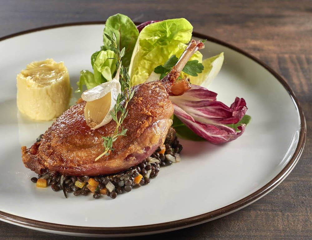 Another French classic, the Suprême De Canard Confit ($39) is a traditional duck confit cured for four hours in a blend of sugar, salt, and spices, and made crisp with a pan fry. The duck leg sits on the requisite bed of lentils, slow cooked with carrots, celery, thyme, and sherry vinegar. Completing the dish is a butterhead lettuce salad and pomme purée made of ratte and local potatoes.