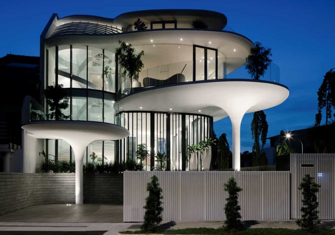 Picture a house in your mind and it’s almost certain to be rectilinear – squarish walls, boxy roof, compact lines and right angles. This is especially true in land-starved Singapore, where not cutting corners means using the little square of land you possess to the fullest.