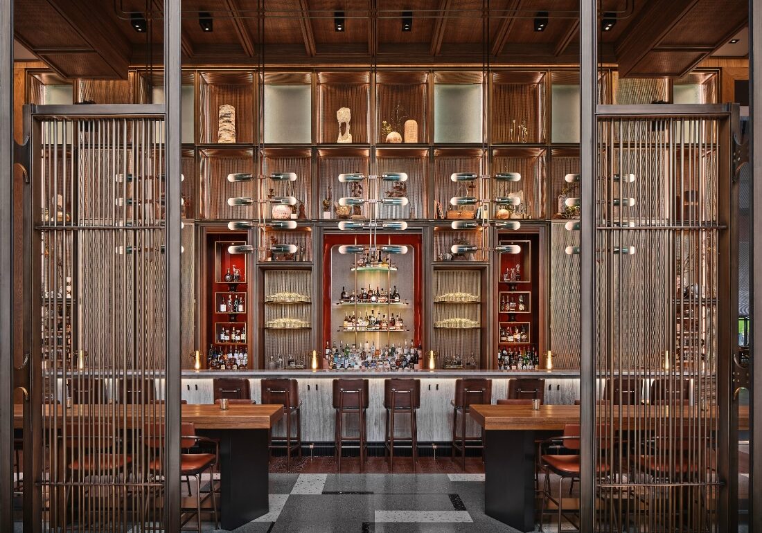 Your experience here is carefully curated, and they’ve created a space with well-executed hospitality in mind. From the entrance, a copper expo wall and two bold wood-wrapped entry portals will captivate you. The mesh walls play the role of a functional barrier from the hotel reception, doubling up as a bar back for bar equipment and liquor. Warm lighting creates a welcoming, personal experience while a rotating soundtrack of light jazz and soft tunes lets the bar transition seamlessly through day to night. So in a way, even your energy levels are managed.