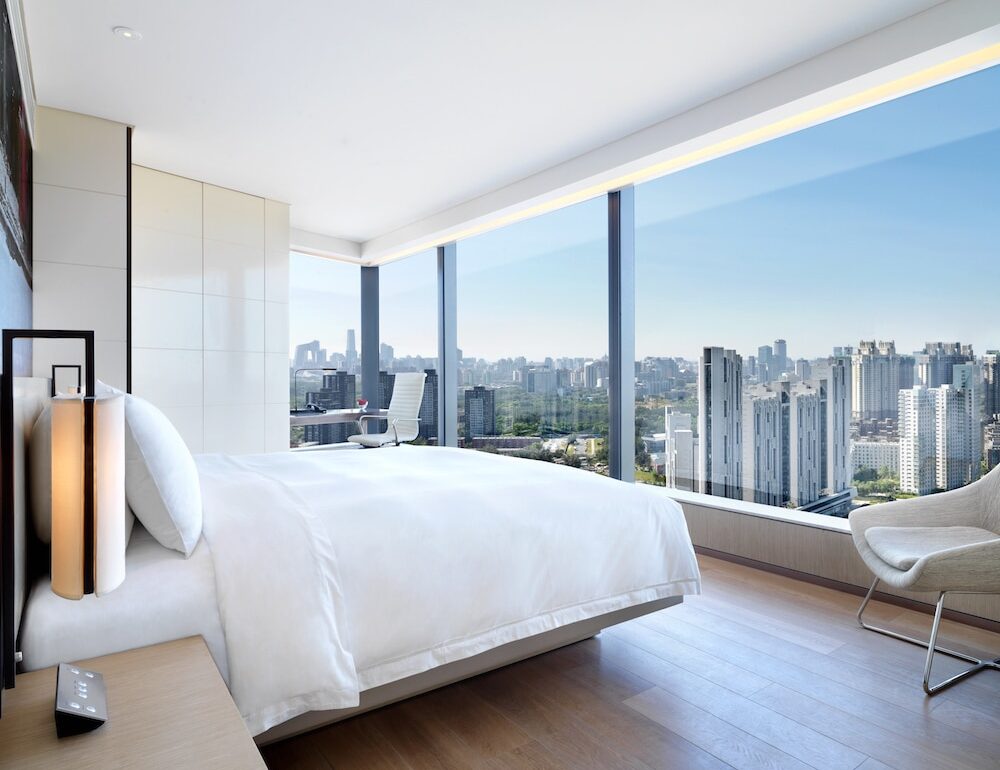 At a spacious 30 square metres (320 square feet) for an entry-level room category, you also get an eyeful of Beijing’s iconic skyline. Again, art figures prominently, with a large print of old Beijing on the headboard over a King-sized bed with ultra comfy down bedding.
