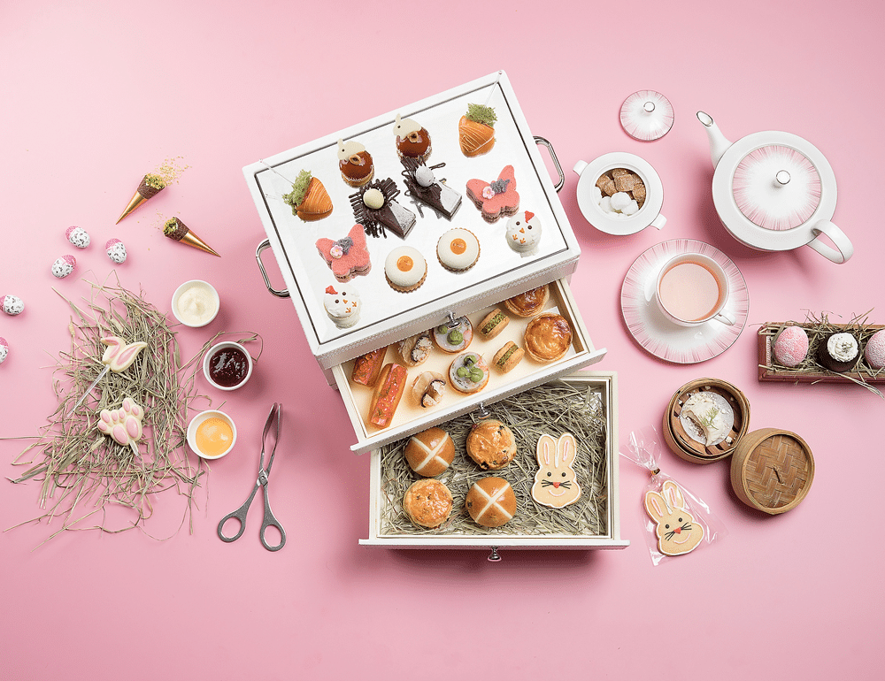 For a more sweet-focused Easter, look no further than Anti:dote Lounge’s signature afternoon tea experience as the usually elegant display of sweet treats are injected with seasonal flair. Presented in an exquisite white leather-clad jewellery drawer, saccharine pleasures include petite desserts like the Carrot Ginger Macaroon, Gianduja Chocolate Nest, and Rhubarb Strawberry Sponge Muscovado; not to mention the festive tradition of Hot Cross Buns. There are savoury delights too: gourmet finger sandwiches (Confit Duck Rilette, River Prawn Chilli Blinis, and more) and a choice of amuse bouche – Chawanmushi Egg with Black Truffle Espuma, or the 24-Hour Sous Vide Pork Dumpling.