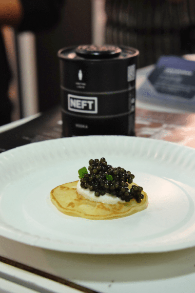 Global Oceanlink dishes out four types of US-farmed gourmet oysters (Shigoku, Fat Bastard, Pacific, and Kumamoto) at $15 for six, while you can get your caviar fix at Vision Distribution, $30 for a blini with Noble Caviar and a shot of NEFT Vodka – much like the peanut butter and jelly combo of luxury pairings.