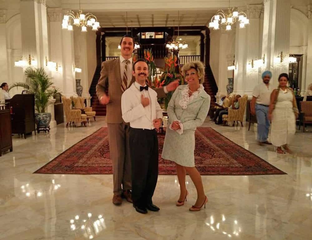 There were also references to the less than competent, alcoholic chef manning the kitchen, who apparently dropped a pair of false teeth in the soup by accident. This resulted in Manuel visiting the tables and stirring the guests’ soup to check for the teeth. The Raffles Hotel waiters at the ‘Restaurant’ blended in with the performance and served everyone promptly, while the actors played their parts.