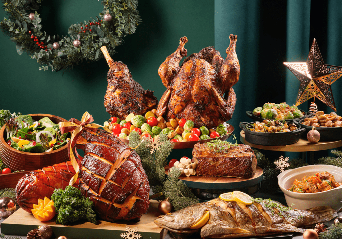 For a home-cooked Christmas dinner that you don’t have to whip up yourself, The Marmalade Pantry‘s ‘Once Upon A Christmas’ selection does it. Look to the Roasted Turkey with Honey, Lavender, and Peppercorn (S$128) and Lemon & Thyme Slow-Baked Salmon (S$78) for fresh flavours this season, whilst their beloved Maple & Clove Glazed Smoked Gammon Ham (S$98) and Mac & Cheese (S$25+) return to keep you happy. Save room for desserts such as the Classic Chocolate Truffle Log Cake and Tangy Lemon Pistachio Log Cake (S$68+ each). Festive bundles are also available.