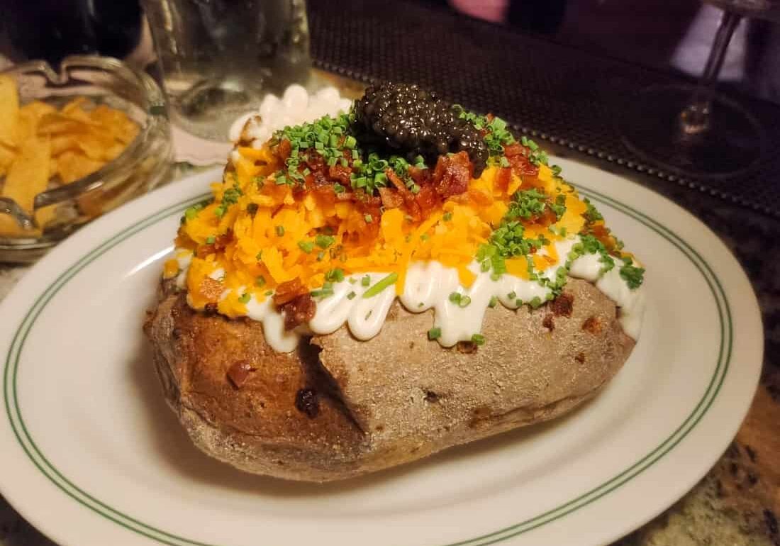 For mains, you’ll find the likes of Chicken Cordon Bleu (S$34) – a roulade of Benton’s ham, oozy provolone, and tender chicken that is surprisingly satisfying. But if you’re after something more extravagant – and of course you are – The Prime Rib (S$150 for 300g) easily feeds four with its crusty outsides and perfectly red, juicy centre. What’s more, it’s served alongside a massive Idaho baked potato that fully deserves its own menu listing. Think a boulder of ultra-fluffy potato brimming over with sour cream and, yes, caviar again.