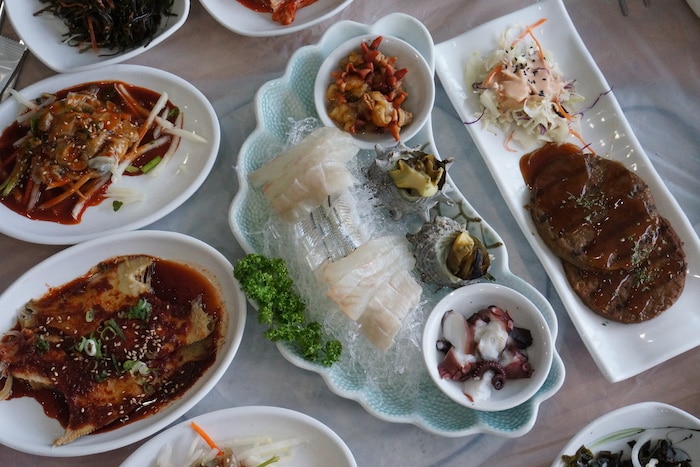 Seafood lovers will find Geoje a heaven, especially when it comes to sashimi restaurants. Sliced raw fish is considered by the city council to be a signature dish of the island. Another island specialty was something new to us – gejang (게장), raw crabs marinated in either soy sauce or a spicy chili pepper sauce.