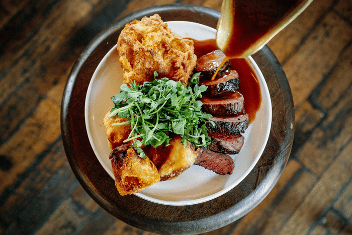 If you can manage to find it, a tasty spread of interesting brunch options will be found at Suprette, including Shakshuka ($19) – otherwise known as eggs poached in spicy tomato sauce with feta cheese and lamb sausages. We love the Spiced French Toast ($14) served with berry compote and golden syrup – seriously delicious – and the wide range of sides which even includes bubble & squeak!