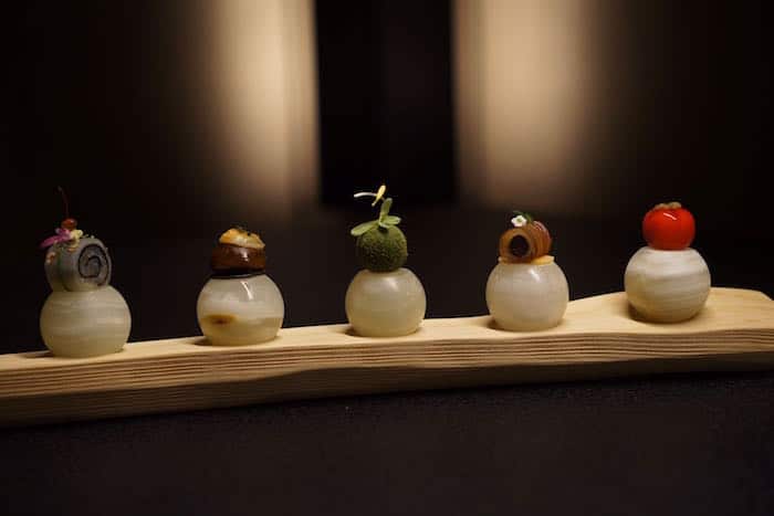 Japanese chemist Kikunae Ikeda coined umami, which has come to be recognised as a basic taste in food like sour, salty, spicy, and sweet. Chef Hamada’s signature Five Flavours of Delight presents five different coloured foods served on stones of five different temperatures.