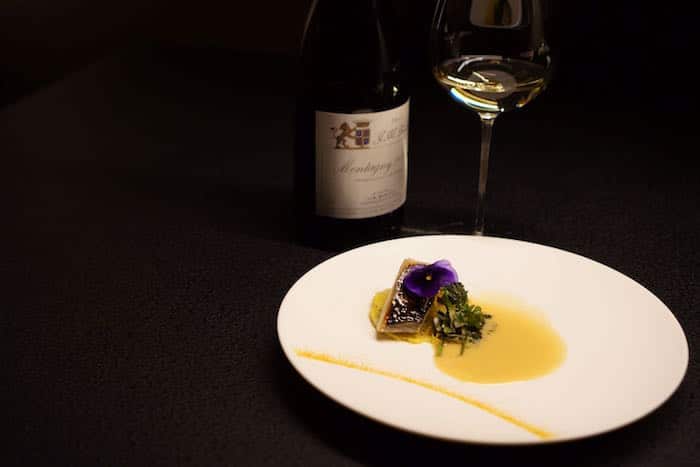 Akamutsu makes another appearance; indeed, it takes centrestage in the next course. Wrapping the rosy sea bass carpaccio around a grilled slice of the same fish was an interesting play on textures, as was adding boiled hotaru ika (firefly squid) to the dish. There are many fishy flavours at work here, so the yuzu puree dotting the plate acted as a palate cleanser between bites – we can’t say it wasn’t well thought out.