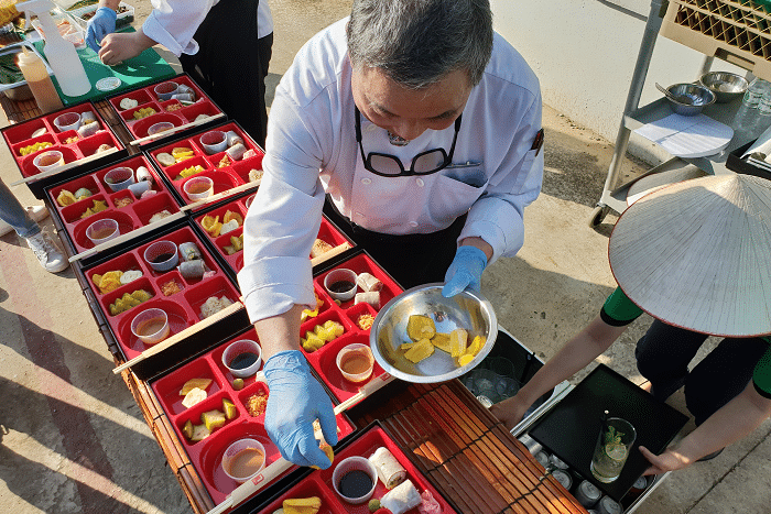 To get the most out of your stay, sign up for one of the hotel’s many tour experiences. The Chef Cooking Class and Demonstration (600,000 VND per guest) brings guests to the local wet market at daybreak to shop for supplies for a night of guided cooking lessons at the scenic Twilight Bar. Wear something comfortable and approach with an open mind, especially if you aren’t used to seeing live animals. Guests also have the option to suggest what meals they’d like to prepare.