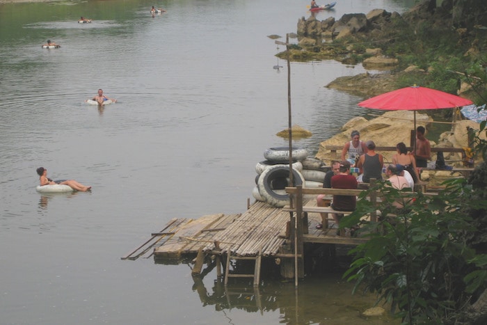 You’ll easily find operators offering tubing experiences peppered all around town, but there’s also the option of renting a tube directly from the main vendor in the village. The warehouse is easily noticeable due to the numerous tuk-tuks lined outside waiting to transport vacationers to the starting point along the river.