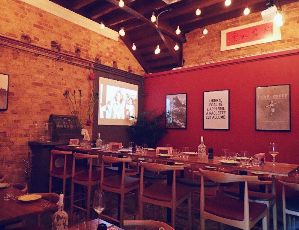 It’s not just about the food and drink either; we were pleasantly surprised by the efforts put in by the organisers to dress up the space according to the menu’s Swiss theme. Besides putting on an old French comedy (Les Bronzes, 1978) – French is one of the four national languages of Switzerland – there’s appropriate wall art and hay on the floor to invoke a barnyard vibe and to get your head in the right space for the best experience.