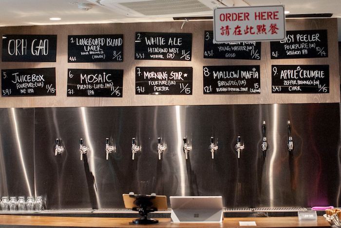 Orh Gao Taproom is a celebration of Singapore’s local coffee shop culture, and in more ways than one. Literally meaning “black dog” in Hokkien, Orh Gao is the Hokkien kopitiammoniker for stout so unsurprisingly, the space hosts Kiliney Kopitiam by day and turns into a cosy taproom in the evening. Food options here definitely skew Asian, with Har Cheong Gai ($10, prawn paste chicken), Calamari with Sambal Tartar ($12), and Salted Egg Yolk Chicken Burger ($16, with fries).