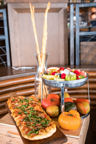 We sincerely advise you save up your cheat days for the occasion because there’s more to follow: classic Italian pizza such as a classic Quattro Formaggi Pizza and Salmon Oreganato with Garlic Butter and Breadcrumbs. The Parmesan Cheese Wheel with Linguine Pasta Cacio E Pepe Style might just have you rolling out of the door. There’s also plenty to graze on – muffins, bagels and sourdough bread – before you wrap up the meal with petite fours and house-made gelato.