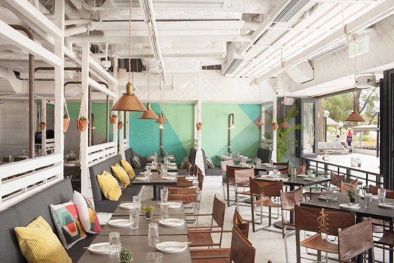 The Limewood dining room conveys that it is a little more than a beachside eatery. The hard polished concrete floor is balanced with the softness of the wooden furnishings, comfortably warn leather backed chairs and a scatters of cushions and throw pillows. The banquette tables aren’t as spacious as the other tables and can be quite a squeeze to navigate in and out, but that’s soon forgotten as you stare out into the beautiful views of Repulse Bay or look behind you at the theatre of the raised kitchen.
