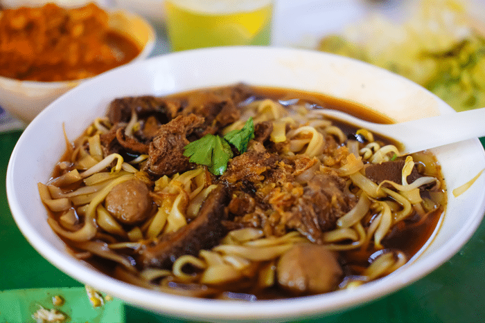 Joy Feast Beef Noodles is not particularly famous, but whatever they do, they do well. Run by an amiable uncle, his menu runs the gamut from Beef Ball Soup ($4) and Oyster Sauce Beef Tripe ($4/$6) to kway teow noodles with any combination of well-cooked sliced beef, brisket, and tripe (from $4). The broth here has a more herbaceous taste than what you usually find in Singapore, but it works.