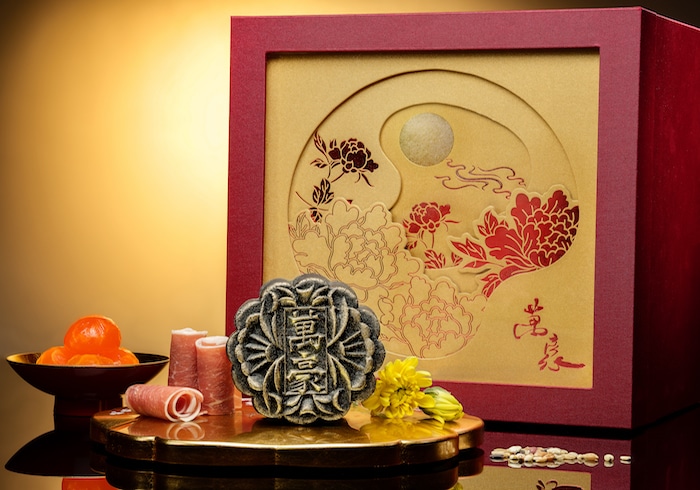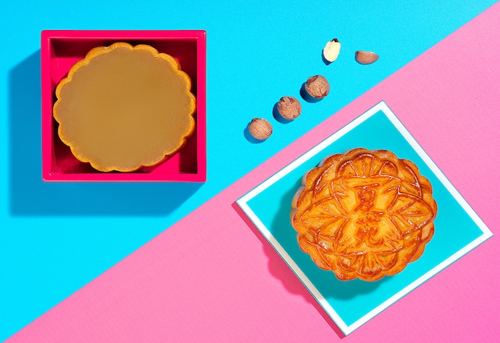 This year, Fairmont Singapore returns with two new flavours in the form of seductive snowskins and traditional baked beauties. Decked in a rose-tinted snowskin, the Mini Salted Egg Caramel ($68 for eight) features a harmonious blend of sweet and salty flavours infused into a smooth, sweet chocolate filling. Also making its debut is the Baked Plum and Figs Mooncake ($68 for four), comprising nutritious plums and figs that are cocooned in white lotus paste.