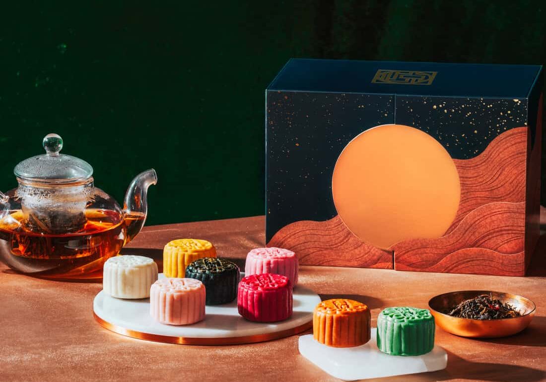 Raffles Hotel Singapore just seems to outdo itself in mooncake decadence each year. Two new snowskin creations are joining their collection this autumn, each elegantly nestled in golden chinoiserie-style boxes. Inspired by 藝 yì by Jereme Leung’s signature Dali rose-infused ice cream, the Da Li Rose and Strawberry Chocolate Snow-Skin Mooncake (S$78) is pretty in pink and just as sweet to eat. For a taste of the dark side, the Yunnan Dark Brown Sugar and Rum Truffle Snow-Skin Mooncake (S$78) is a caramelized treat of dark brown sugar, candied winter melon, and a heady splash of rum.