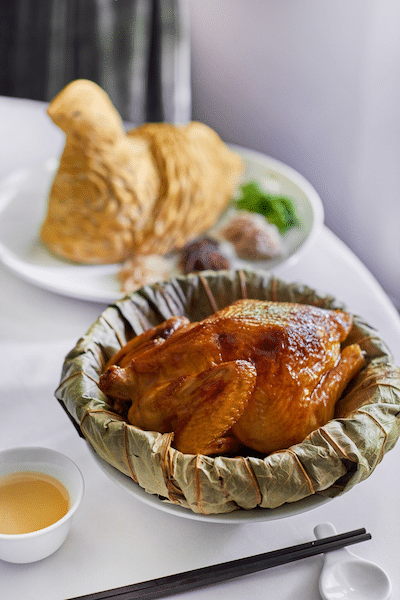 Taking his showmanship a step further, Master Chef Goh Chee Kong invites diners to get hands-on with the Golden Fortune “Kampong” Chicken ($80, two-day advance order required), a whole chicken roasted with Chinese wine, black fungus, and shredded pork which is then baked within a thick dough shell. The impressive looking dish is brought to the table together with heavy mallets, and the chicken-moulded exterior is smashed away to reveal the real poultry within. A delicious alternative to rage rooms, to be sure.