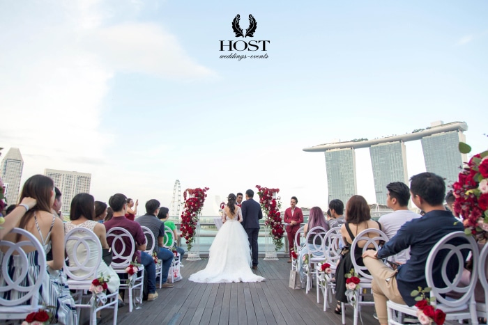 The rooftop deck can be used for cocktail receptions as well as a romantic solemnisation against picturesque vistas of Marina Bay.